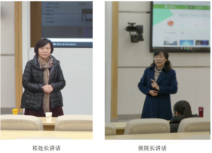 侯铁翠副院长主持会议。首先,教务处祁处长讲话,对前期MOOC教学的整体情况进行了总结与反馈,目前,MOOC平台上共有23门课程,本学期开设有18门;调查结果显示,80%以上的学生对基于MOOC的混合式教学持积极认可态度,表示教学效果要优于传统课堂教学,学生学习视频课件的完成率达90%以上,MOOC教学取得了较好的教学效果;祁处长对教师们在教学上的辛勤付出表示感谢,这些教师是学校MOOC教学的引领者和示范者,她鼓励各院系教师继续积极探索MOOC教学模式;目前,学校计划出台MOOC教学相关的管理办法和激励措施。