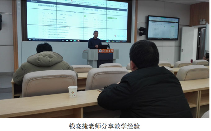随后,信息工程学院钱晓捷老师(主讲课程:《汇编语言程序设计》)与徐春华老师(主讲课程:《现代教育技术》)分别就MOOC平台的教学功能、利用MOOC创新教学模式与其他参会教师进行了分享。其他教师也结合自己的教学体会,对平台的功能改进、MOOC教学策略等进行了研讨与交流。最后,平台技术负责人就前期教师提出的问题及改进建议一一进行了反馈与说明。