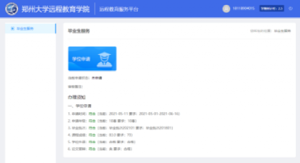 3. 符合学位授予条件,点击“学位申请”提交学位申请。